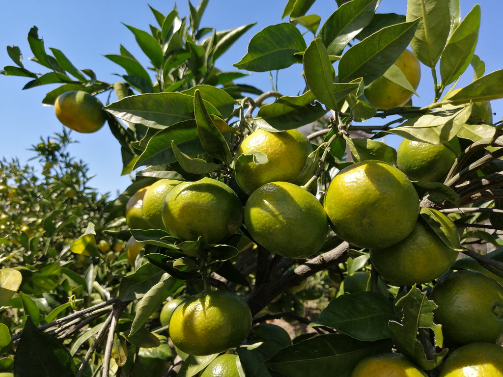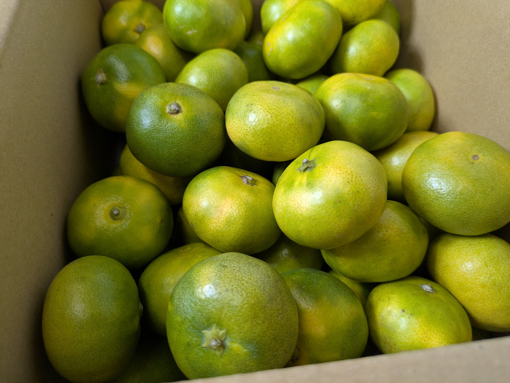 極早生温州みかんの特徴といえば、酸味のある爽やかな味わい。外皮には緑色が残り、見た目も青々としたフレッシュな印象です。果汁をたっぷり含んだ果肉は、口に入れた瞬間に爽やかな酸味と甘さが広がります。収穫直後は酸味が際立ちますが、数日置くことでまろやかさが増し、バランスの取れた味わいへと変化します。